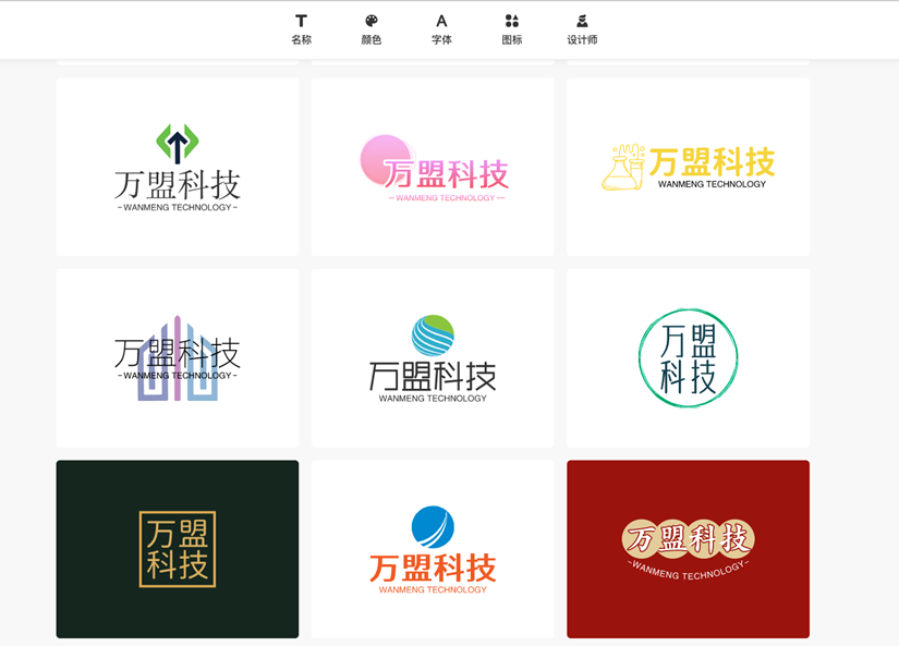 和提供固定 logo 模板的网站区别点在于:这个工具能够根据你输入的内容智能分析搭配图标颜色字体,千人千面智能生成。挑选的过程中,你还可以在上方工具栏里调整你的名称、图标和颜色等。