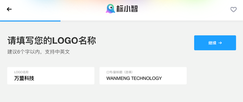 打开官网就是很简洁的设计,点击「在线 LOGO 设计」,输入自己的 Logo 名称和口号,然后点击继续挑选 Logo 所在的行业、喜欢的颜色和字体等。