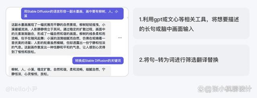 ③利用 gpt 或文心等相关工具,将想要描述的长句输入,最后加一句描述,请将这句话拆分为 Stable Diffusion 的提示词,如果不满意可以继续恢复优化提示词,或者换一批相关描述,然后将转换好的提示词同 ①一样增删改