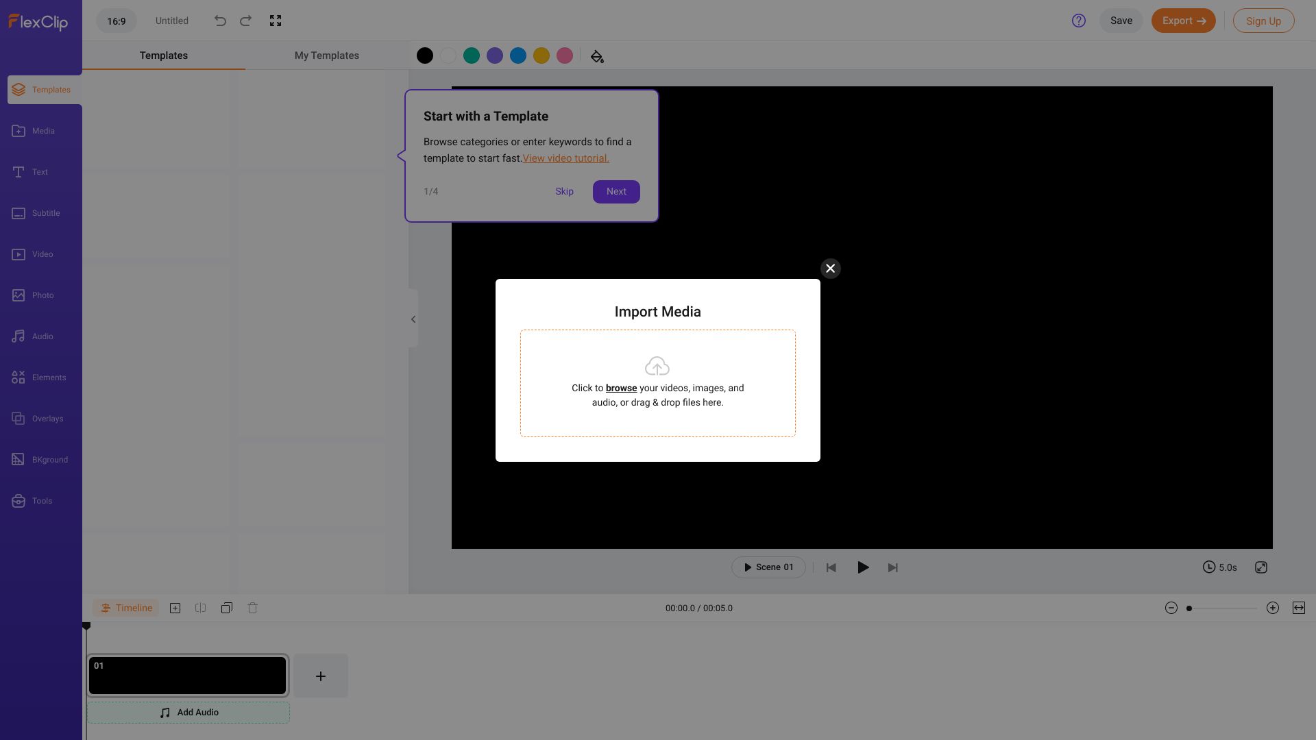 FlexClip是一款简单易用的在线视频编辑工具,旨在帮助大家创建专业水准的视频作品。无论你是要制作宣传视频、教育教学视频、社交媒体内容还是其他类型的视频,FlexClip都能满足你的需求。