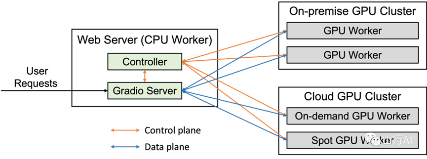 要使用Web UI进行服务,您需要三个主要组件:与用户交互的Web服务器、托管一个或多个模型的模型工作者,以及协调Web服务器和模型工作者的控制器。您可以在此处[32]了解更多关于架构的信息。