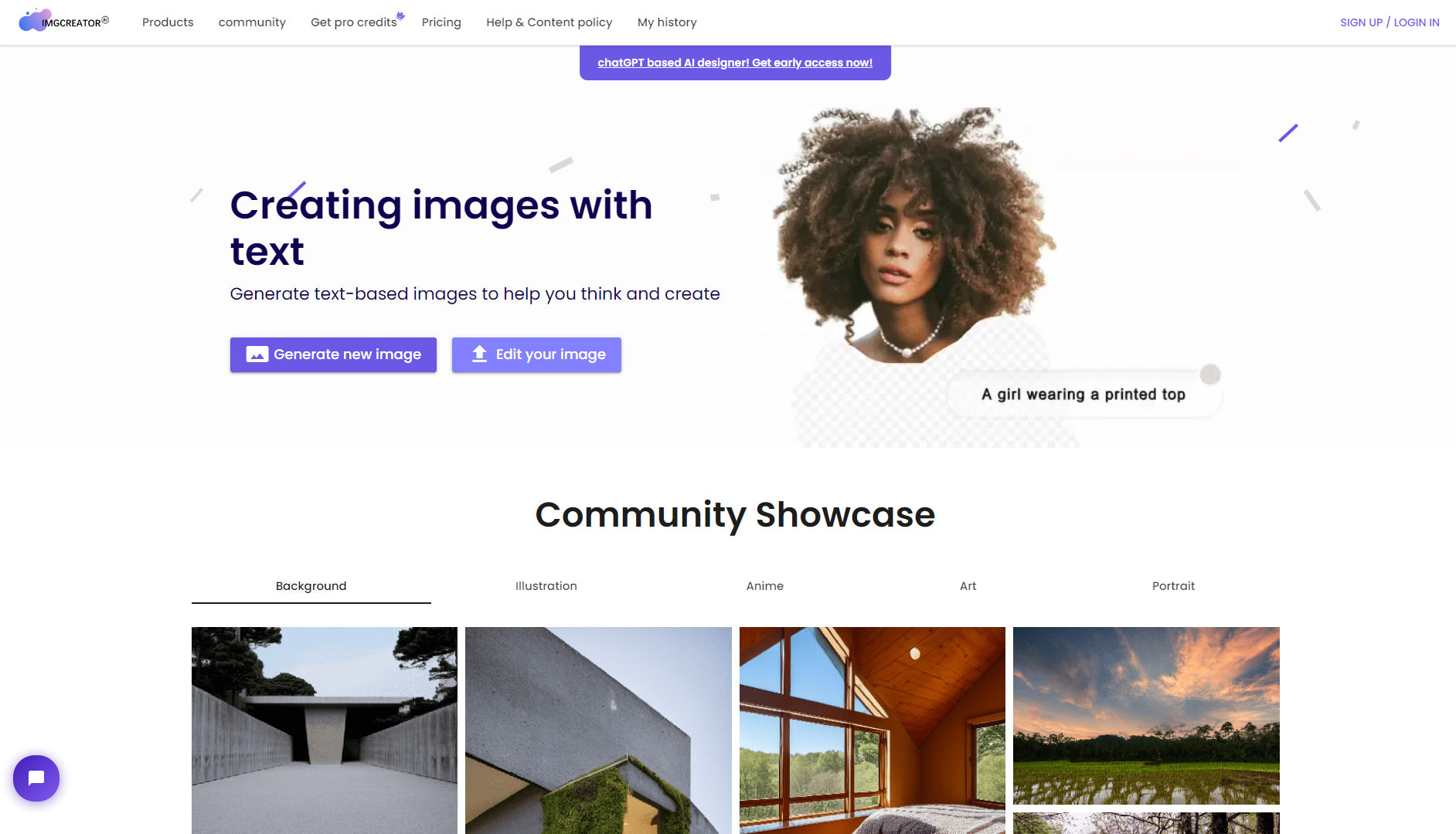 ImgCreator.AI是ZMO.AI旗下一个人工智能AI图像生成器,输入提示文本,AI自动帮你生成图像!支持文生图(文字生成图片),图生图模式,并拥有AI房间设计功能,上传你的空间照片,让AI在几秒钟内重塑您的梦想房间,一键帮你生成室内设计图!还可以根据图像生成轮廓线稿,帮你生成相似轮廓的图片!官网网站https://imgcreator.ai/